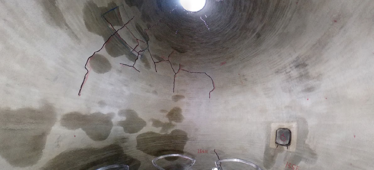 - ④ ドローンが煙突底部に到達すると、機体を回転させ、異なる範囲(方位角)の撮影を実施